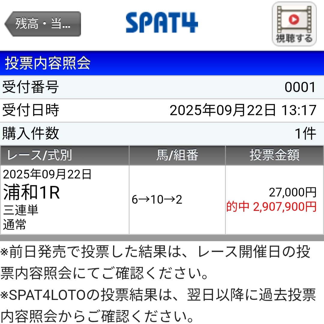 ドキドキしながら指示通りに馬券を購入して、その結果は