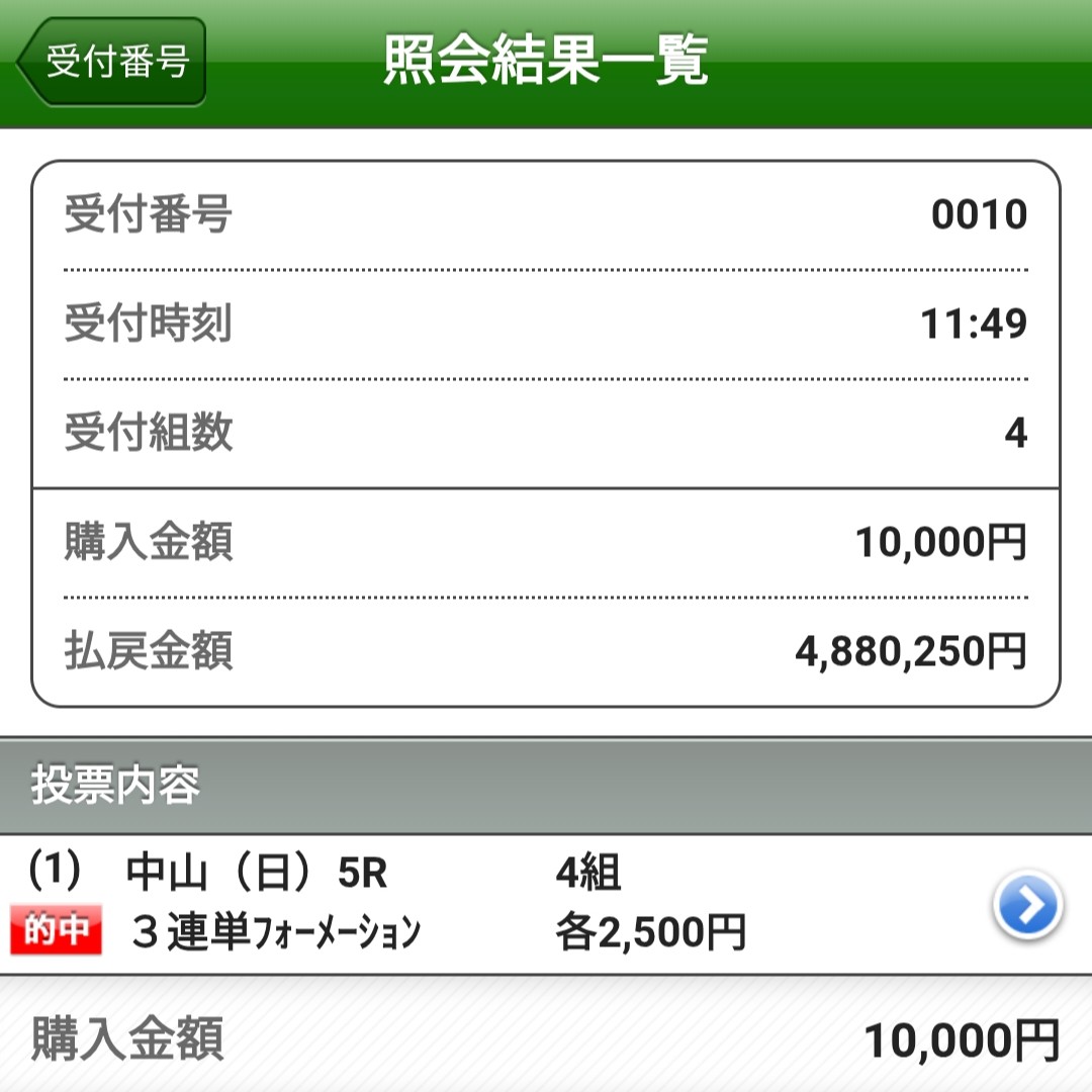 今日では、中山5Rで123万5000円の高額払い戻しが出ており、決して偶然とは思えない継続的な的中実績があります。
