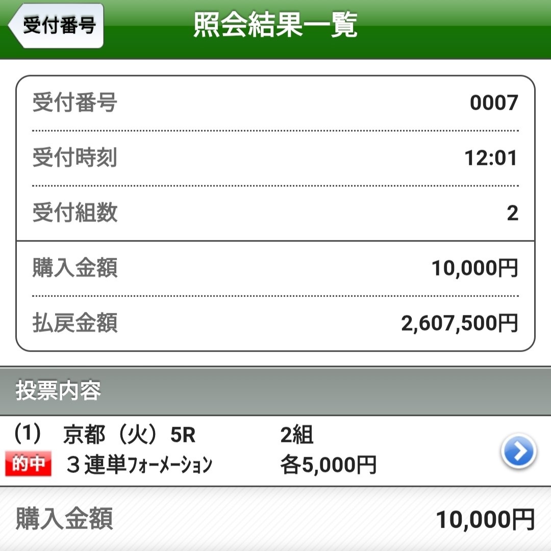 その結果――2,905,200円の的中。