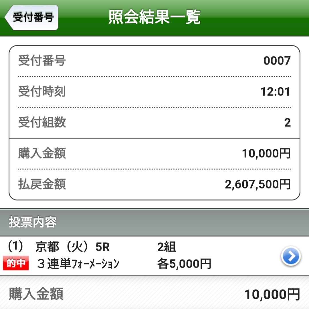 買い目をそのまま受け取り、余計な補足も疑念も加えず、その通りに投じただけです。