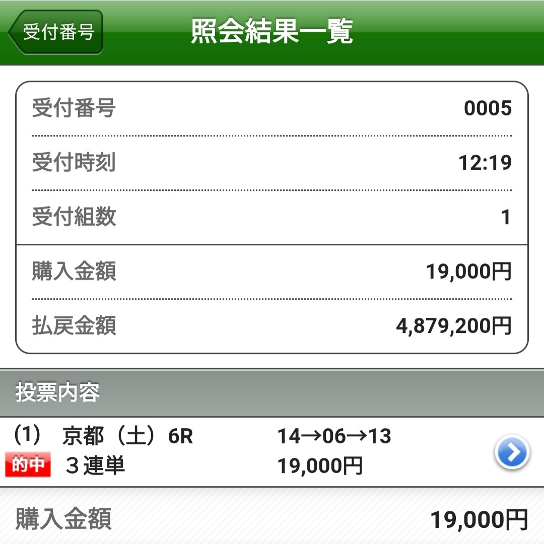 実際に筆者は、昨日この人物の予想を購入し、中山5Rで1,416,000円の的中を確認している。