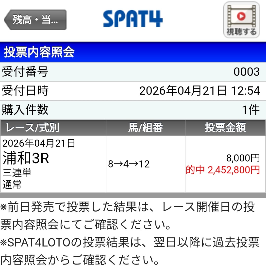 昨日実際に購入し、浦和1Rにて879,000円が的中しました。